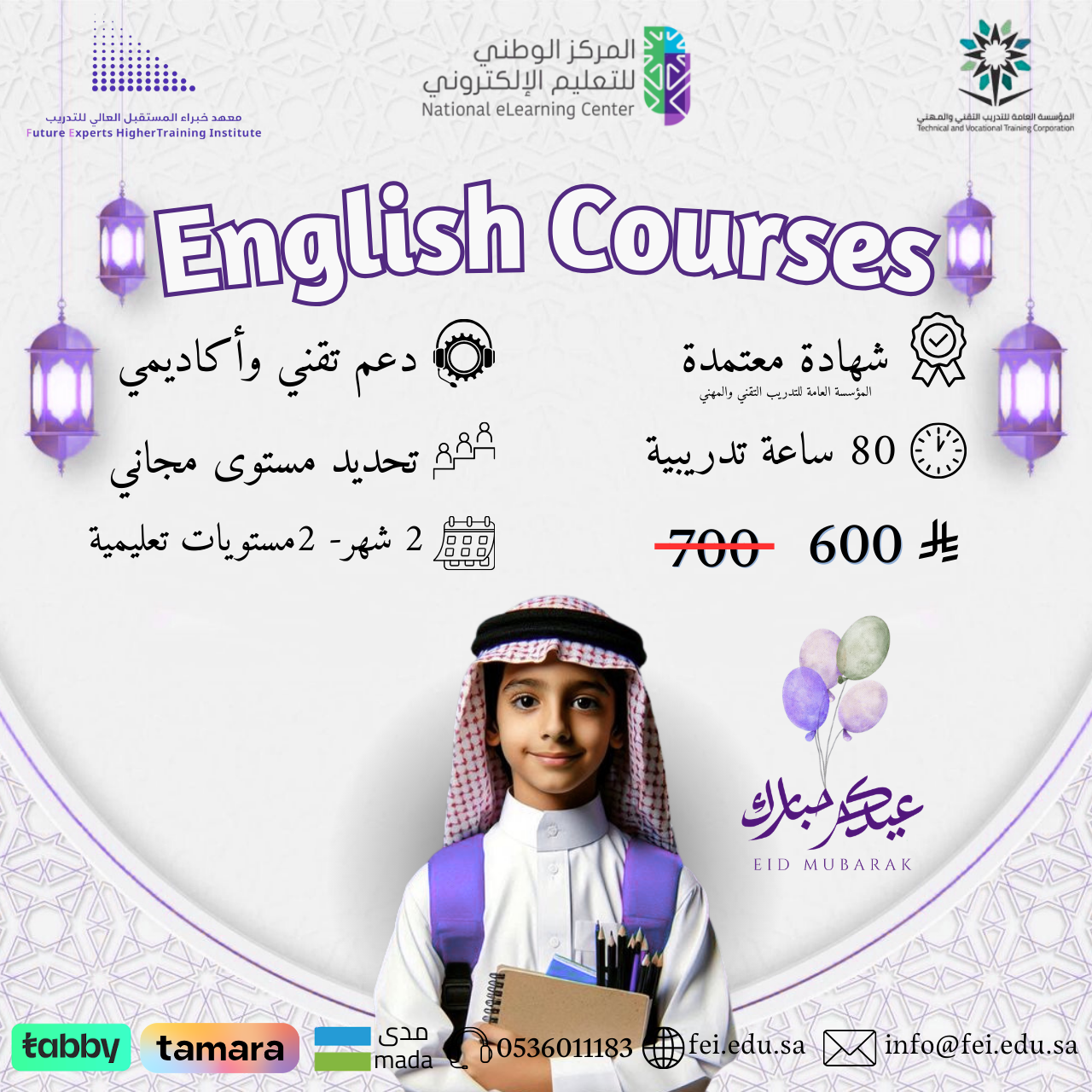 يحصل الطالب على تحديد مستوى مجاني من قبل المرشد الاكاديمي