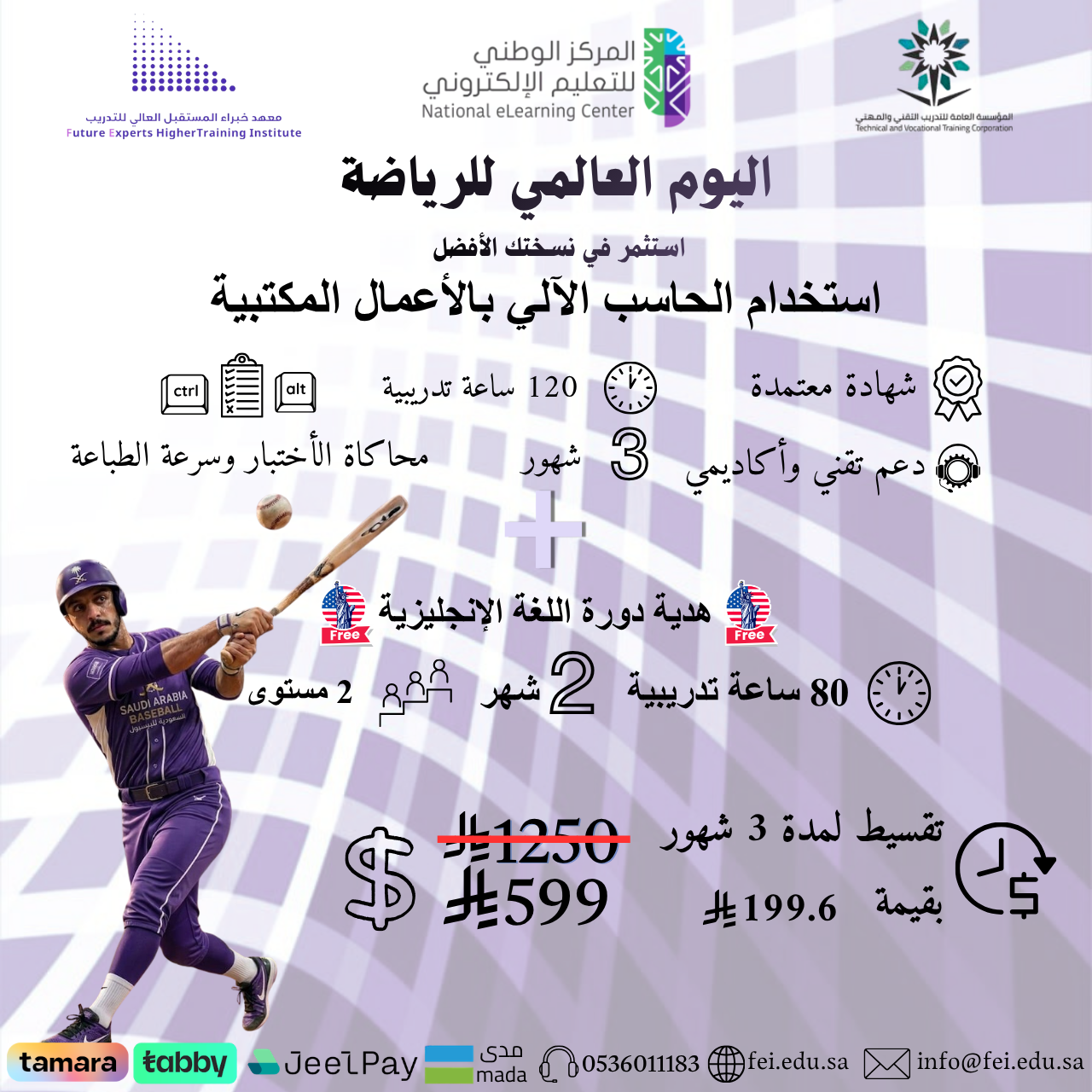 استخدام الحاسب في الأعمال المكتبية 3 اشهر+ هدية دورة اللغة الانجليزية لمدة شهرين