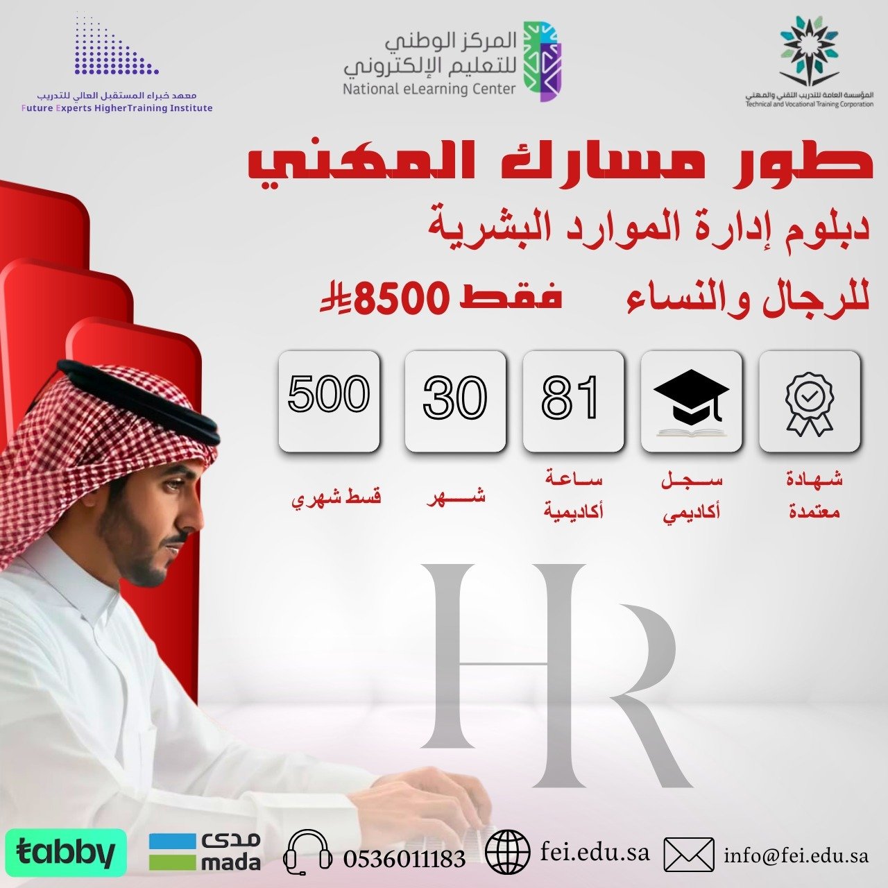 حضوري صباحيصمم دبلوم الموارد البشري بما يتوافق مع احتياجات سوق العمل المحلية للتخصص، و يتم التدريب هذا التخصص