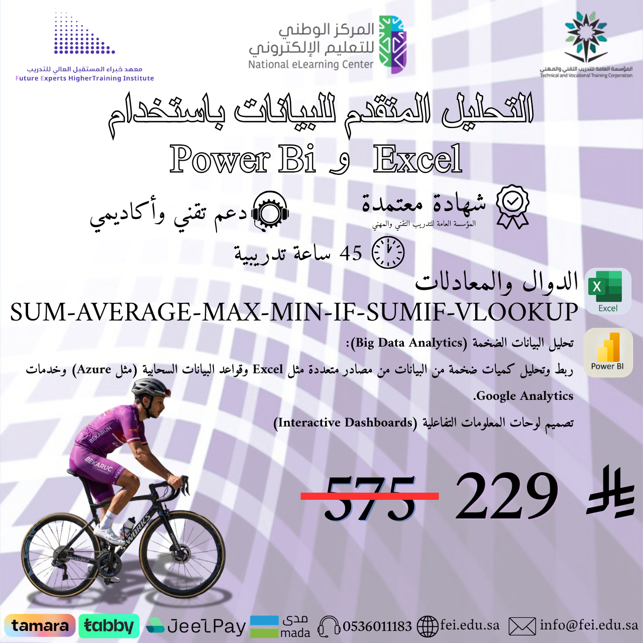 اونلاين مسائيدورة تحليل البيانات باستخدام Excel و Power BI هي برنامج شامل يهدف لتمكينك من تحويل البيانات الخام إلى رؤ