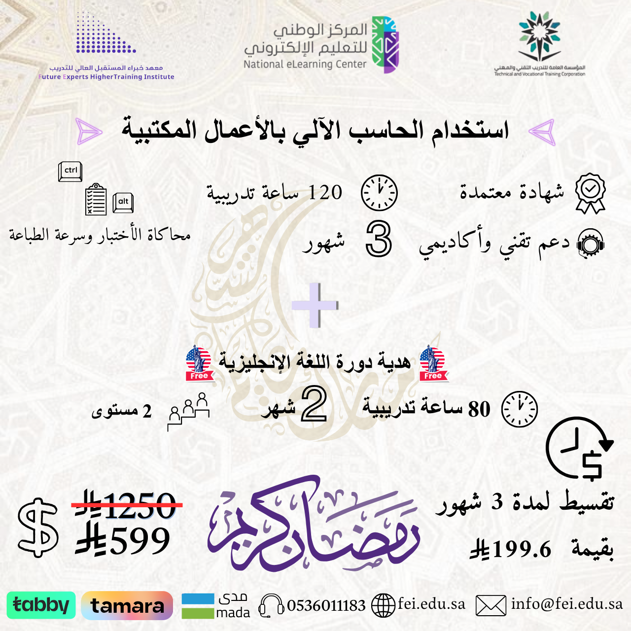 استخدام الحاسب في الأعمال المكتبية 3 اشهر+ هدية دورة اللغة الانجليزية لمدة شهرين